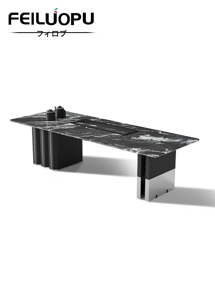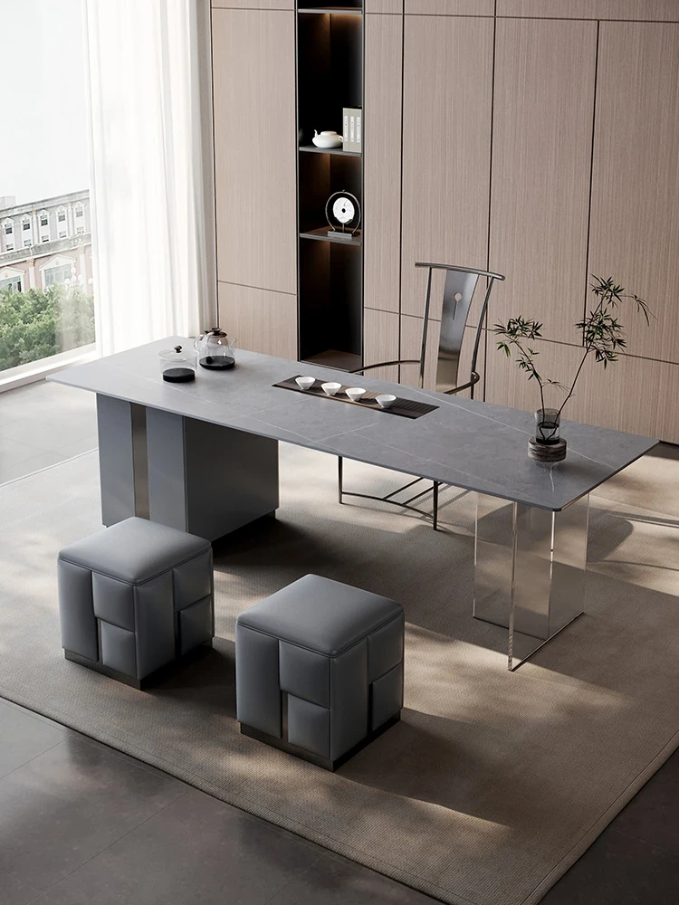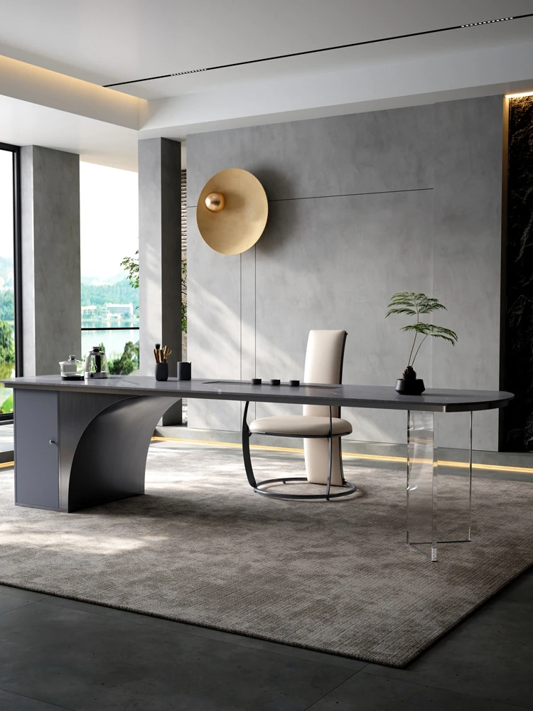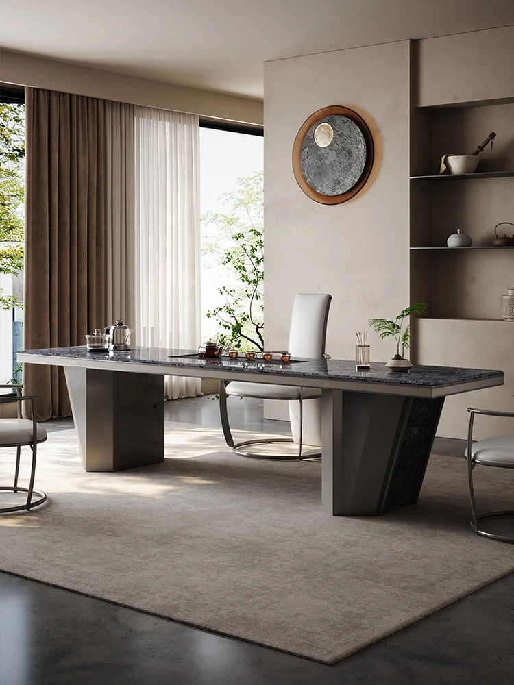 軽やかで贅沢なモダンデザインの大サイズ岩板茶卓セット - オフィスにも最適!高級感あふれるデザイナー仕立ての家庭用茶台で、スタイリッシュな空間を演出します。