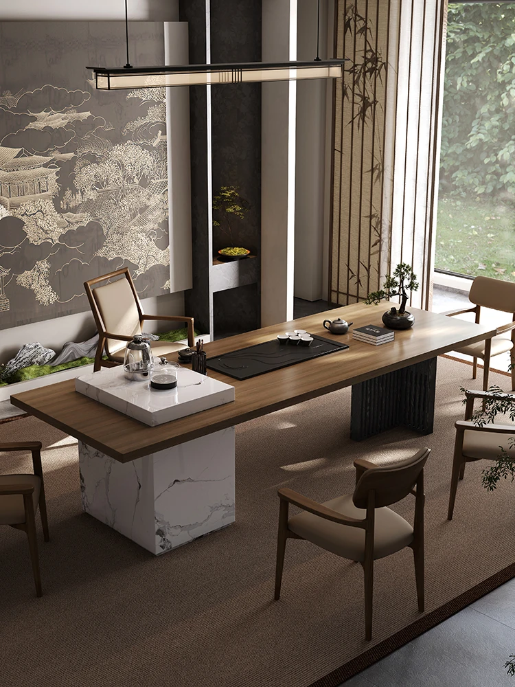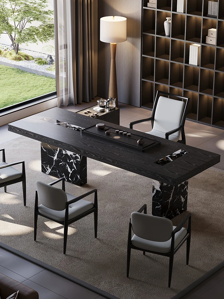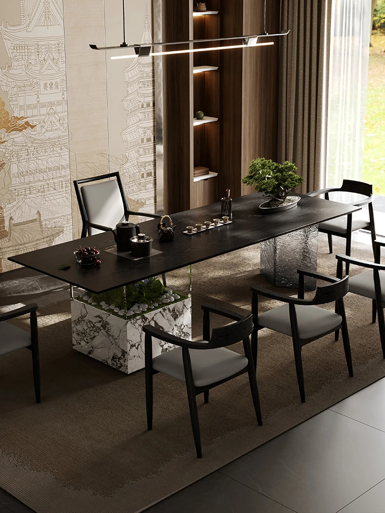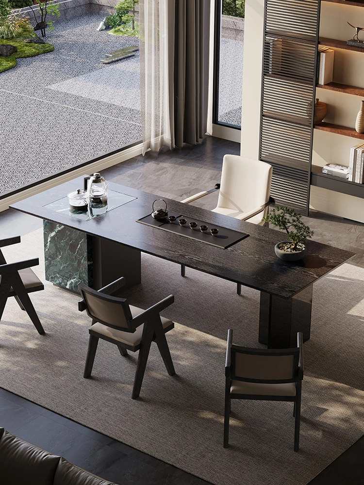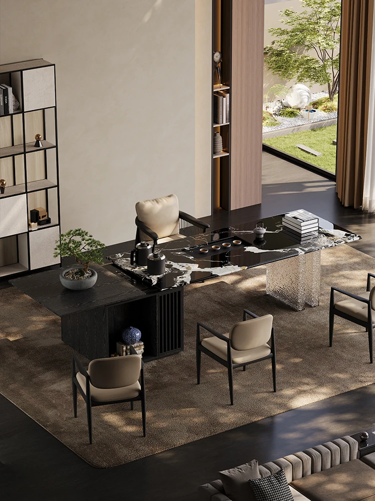 新中式岩板茶卓 - モダンでシンプルなデザイン、おしゃれなオフィスにもぴったり!高級感溢れるイタリアンスタイルの茶卓とチェアのセットで、リラックスしたひとときを演出します。