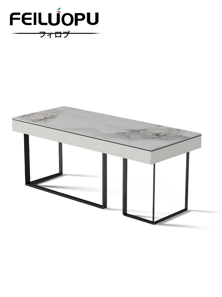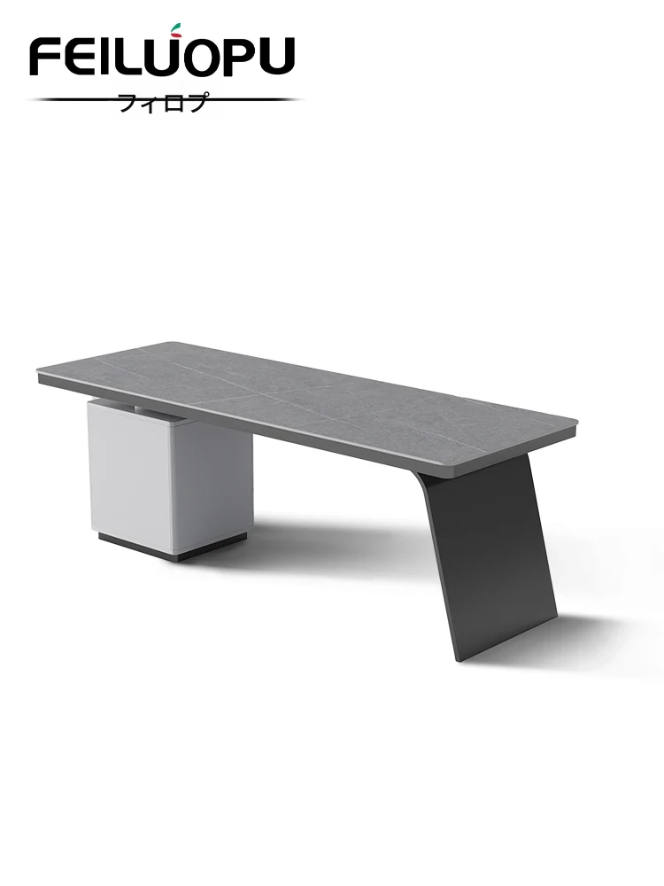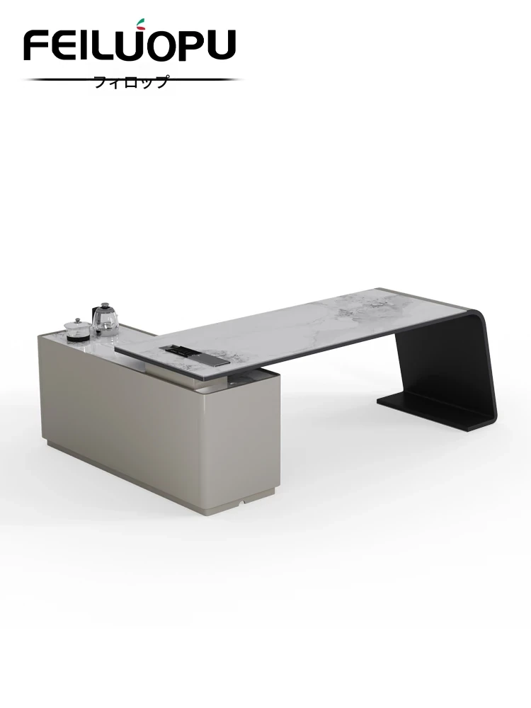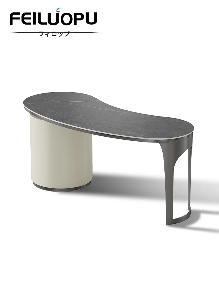 イタリアンミニマリズムの岩板デスクセット - 家庭用コンピューターデスクと椅子の組み合わせ、現代的でシンプルなデザイン。ビジネスミーティングや美容サロンの受付にも最適!