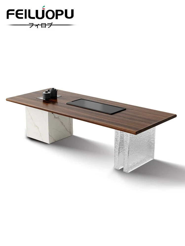 新中式オフィス用茶卓 - イタリアンミニマリズムデザイン!広々とした高級感溢れる茶器セットで、贅沢なティータイムを演出。デザイナーによるこだわりの組み合わせで、あなたのオフィスを洗練された空間に!