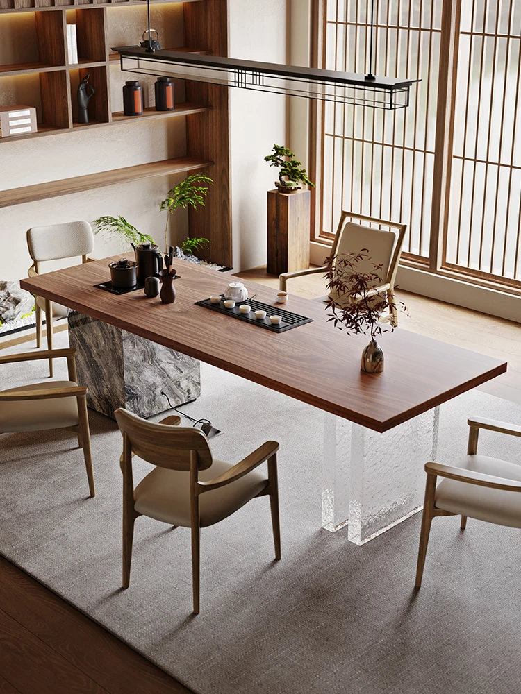 新中式デザインの北米ブラックウォールナット製、イタリアンミニマルスタイルの茶卓と椅子のセット - デザイナー創作の高品質無垢材ティーテーブル。おしゃれで機能的な空間を演出!