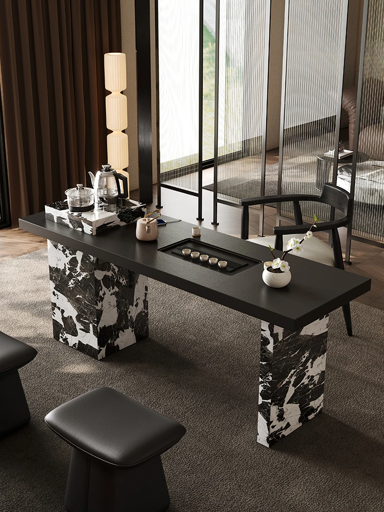 現代的シンプルな新中式ティーテーブル、ラグジュアリーな天然石を使用した茶台。広々とした平面別荘に最適で、スマート給水機能付きの収納ティーテーブル。優雅なひとときを演出します!