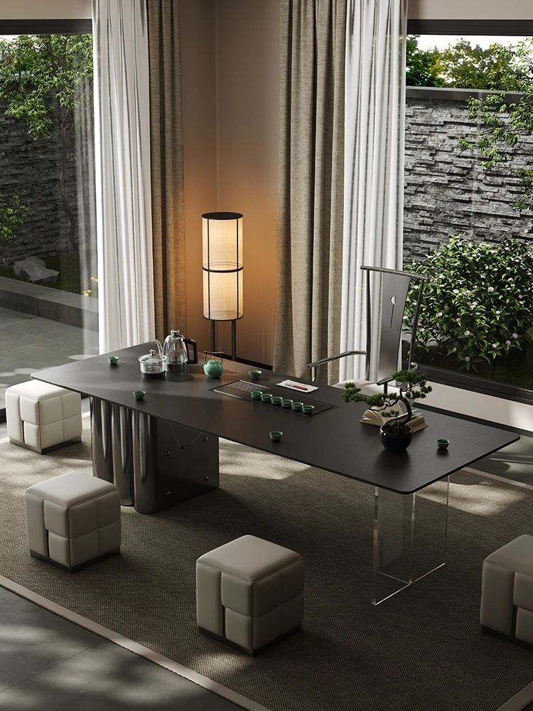 イタリアンミニマルスタイルの高級感溢れる家用岩板ティーテーブルセット。オフィスや接客にも最適なアクリル脚の功夫茶台で、洗練された空間を演出します。茶の時間をもっと特別に!