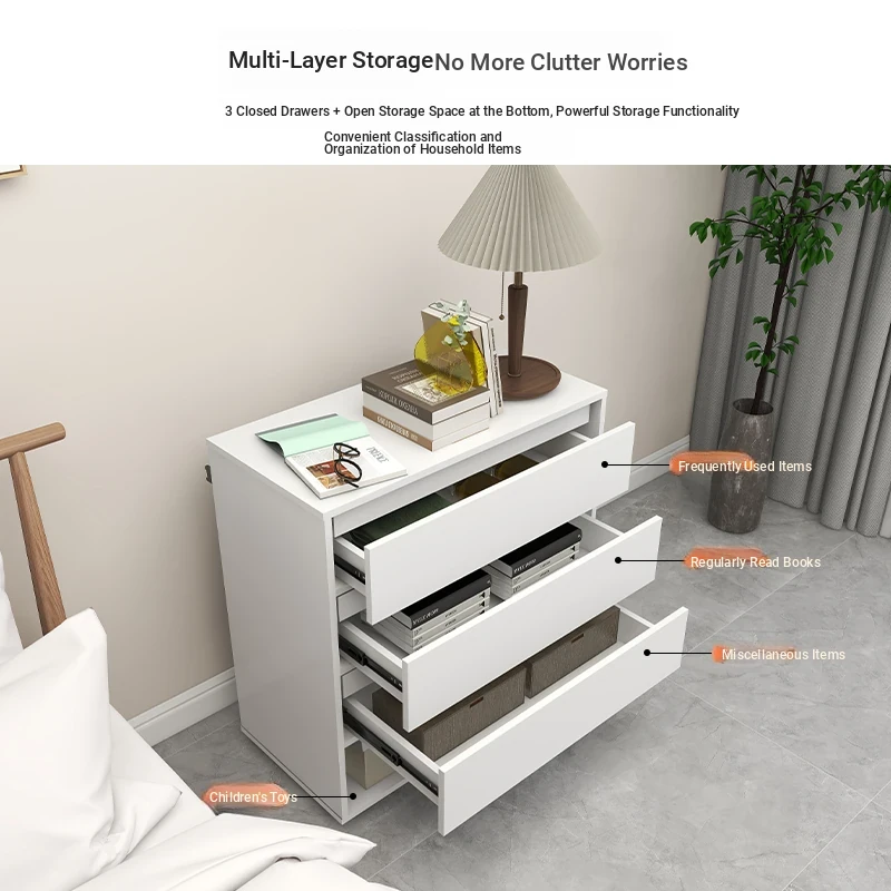 Nordic Minimalist Luxury Multi-Functional 3-Drawer Cabinet - Chic Solid Wood Storage Unit for Bedroom and Living Room, Space-Saving Wall-Mounted Design