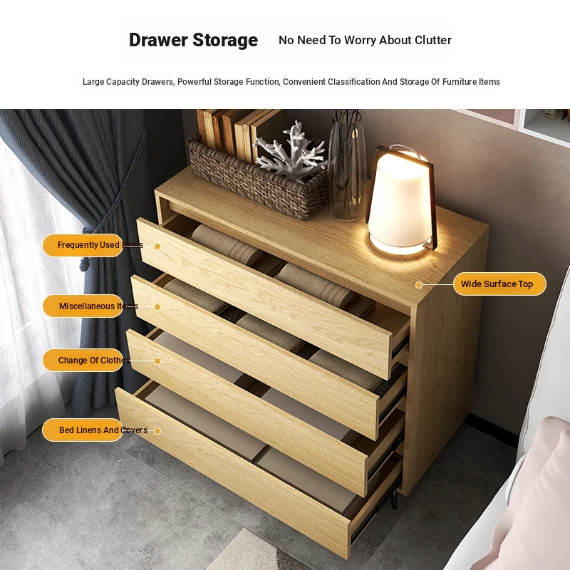 Nordic Minimalist Solid Wood Five-Drawer Chest - Modern Storage Cabinet for Bedroom and Living Room, Wall-Mounted Design, Stylish and Functional Drawer Organizer