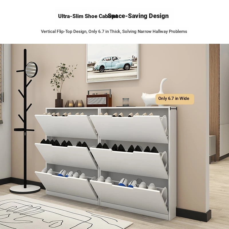 Slim Nordic Entryway Shoe Cabinet with 17cm Flip-Top Design - Space-Saving, High-Capacity Storage Solution for Home Entrance