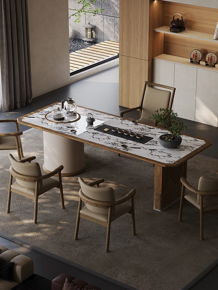 新中式岩板茶テーブル・イタリアンミニマリズムの茶台・椅子セット2025年新作!高級感溢れる家庭用・オフィス用の完璧なティータイムを実現します!