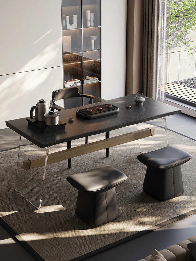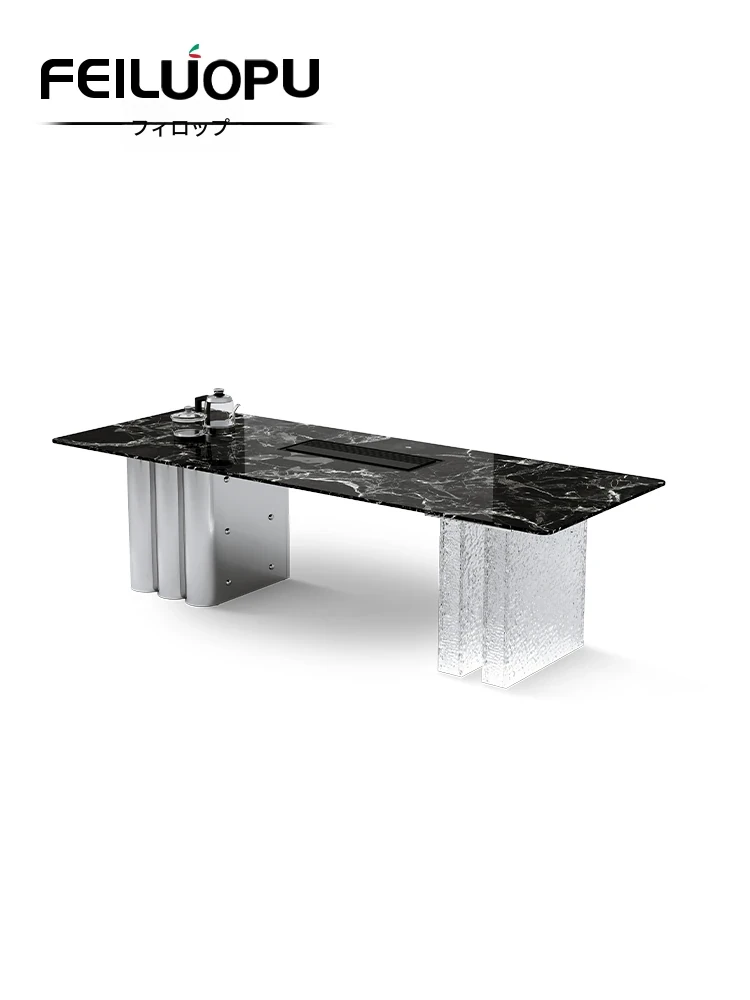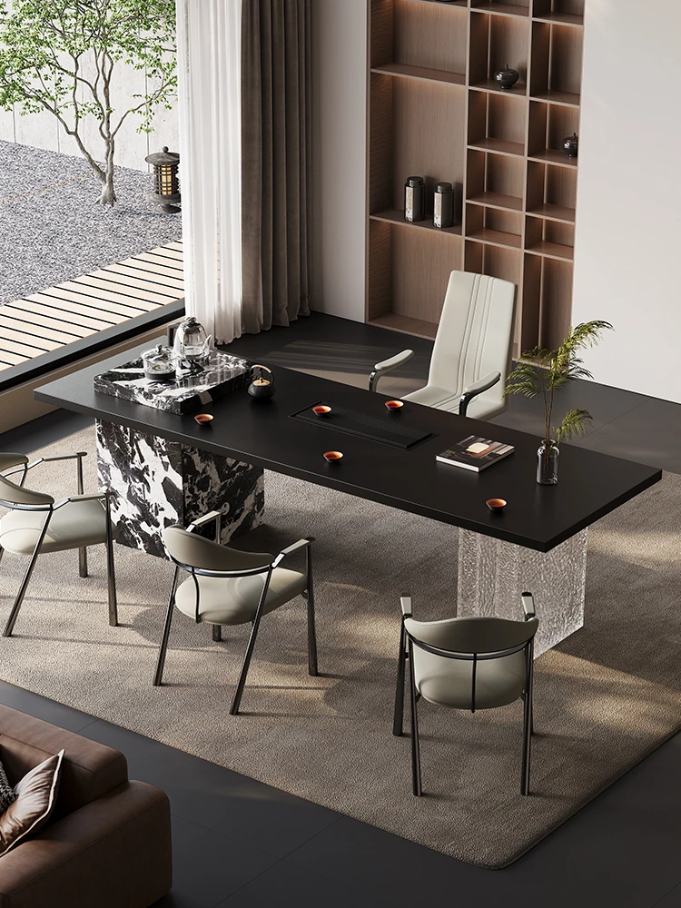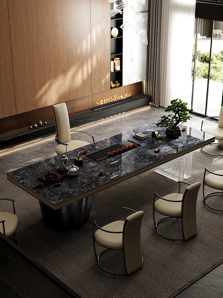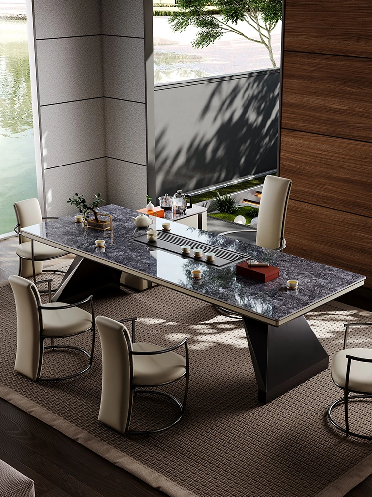 軽やかで贅沢なモダンデザインの大サイズ岩板茶卓セット - オフィスにも最適!高級感あふれるデザイナー仕立ての家庭用茶台で、スタイリッシュな空間を演出します。