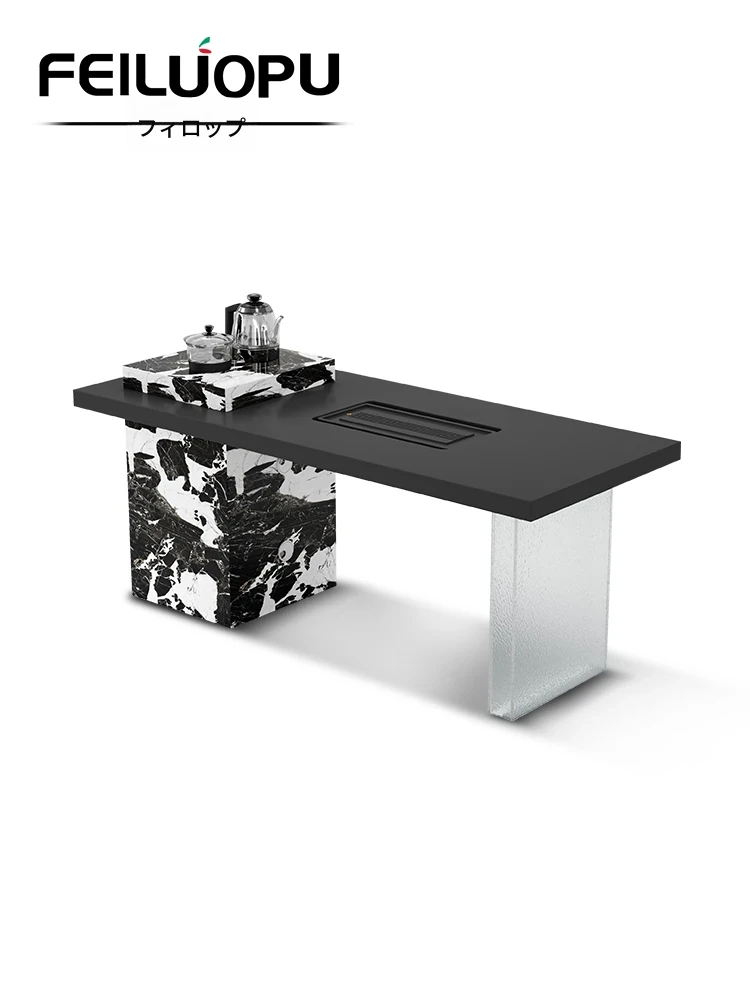 モダンなシンプルデザインの軽奢オフィス・バルコニー用ティーテーブル - スマート給水機能付き、光沢のある石板仕上げで、別荘や家庭にぴったり。おしゃれで実用的な一品で、お客様を迎えるのに最適です。